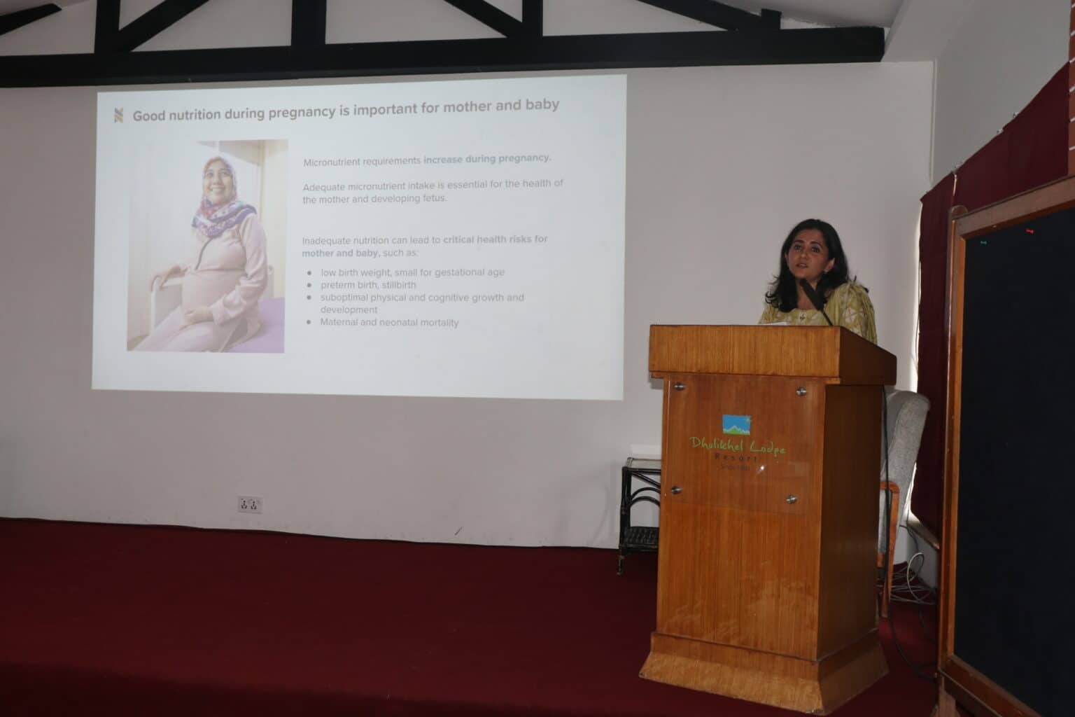 Le Dr Bibek Kumar Lal, directeur de la division du bien-être familial, a souligné l’importance de passer du fer et de l’acide folique (IFA), la vitamine standard actuelle pour les femmes enceintes et allaitantes au Népal, au MMS. Il a cité une multitude de preuves, à la fois mondiales et spécifiques au Népal , qui soutiennent son efficacité pour améliorer les résultats de la grossesse, comme l’augmentation du poids à la naissance et la réduction des naissances prématurées et des mortinaissances. Le Dr Bibek a souligné son rapport coût-efficacité et a plaidé pour l’inclusion du MMS sur la liste nationale des médicaments essentiels.